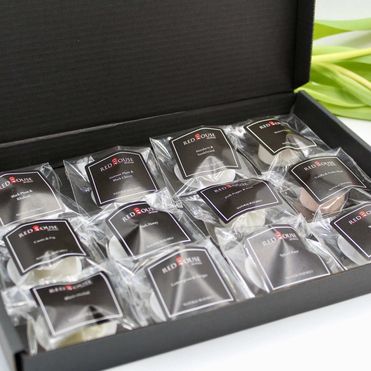 A discovery box consisting of a variety of 12 fragranced wax melts chosen by us. Each melt is packaged and labeled individually to help you decide which fragrance you like before buying a tin of 6 or a tub of 12. The discovery set also makes a great gift!